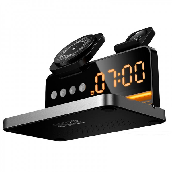 HOCO DWQ03 4v1 brezžični polnilec 15W z uro in alarmom