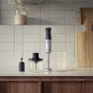 Smutiji, omake, gvakamole, pire krompir ali nasekljana čebula. Večfunkcionalnost vas bo popeljala še dlje. Paličnemu mešalniku je priložena posoda in mini sekljalnik. Omogoča raznolike hitrosti s preprostim drsnim stikalom, brez prekinitev. Za dodatno intenzivnost bo funkcija Turbo vašim sestavinam dala dodatno moč. Ročaj se idealno prilega v vašo roko, kar vam omogoča stabilen in varen oprijem za opravljanje vseh vrst opravil brez prikrajšanja udobja.