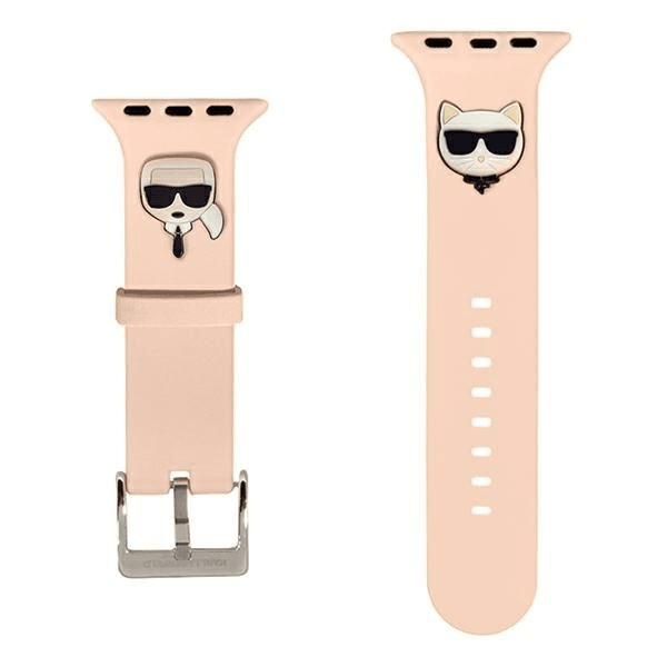 Karl Lagerfeld silikonski pašček za uro za Apple Watch 42 / 44 / 45 mm - Heads - roza - KLAWLSLCKP