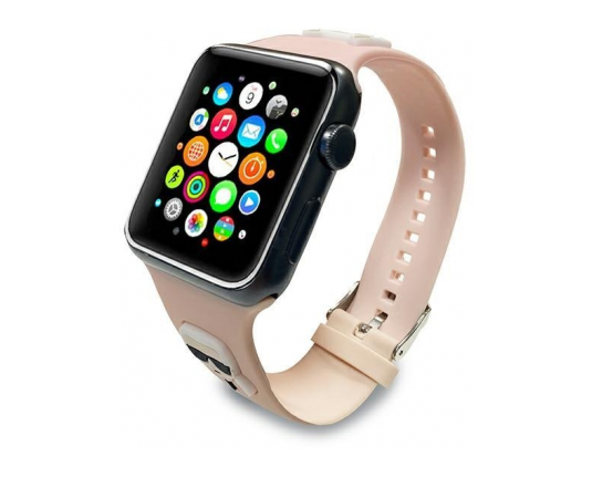 Silikonski pašček za uro Karl Lagerfeld KLAWLSLCKP za Apple Watch 42 ali 44 ali 45 mm - Heads roza