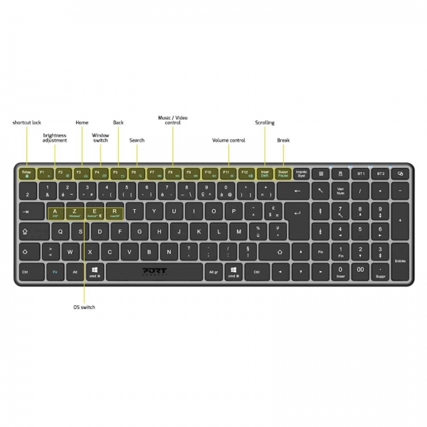 | Specifikacije | https://portdesigns.com/en/keyboard/azerty-bluetooth-wireless-compact-keyboard |